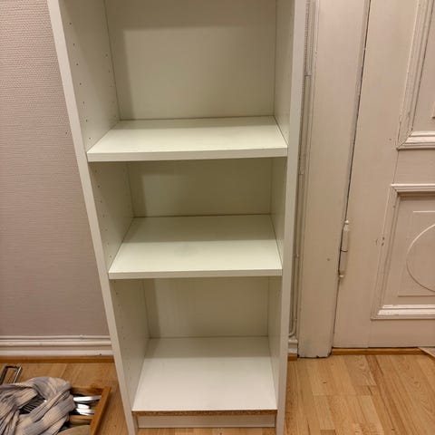 Trenger noen ekstra spiker . Str 24 cm i hyllene k høyden , lengde 117, høyde 37
