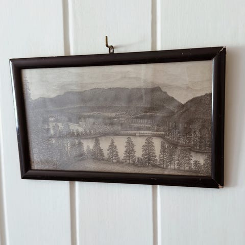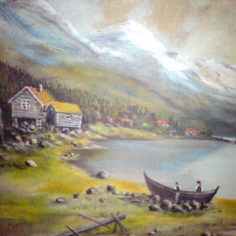 Oljemaleri fra 1944 av Domkirkeruinene på Hamar av antikk steinbygning