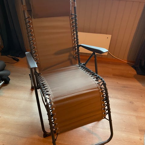 Uåpnet solseng i pakningen sin. Kjøpt i fjor.