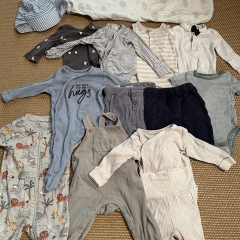 Masse klær med mye bruk igjen selges. Alt fra størrelse 50-86. Størrelsene er sortert i hver sin sekk, og jeg vil tippe rundt 40-50 plagg i hver størrelse. Alt kan kjøpes for 2000kr eller evt 500kr pr sekk. Må hentes i Moss.