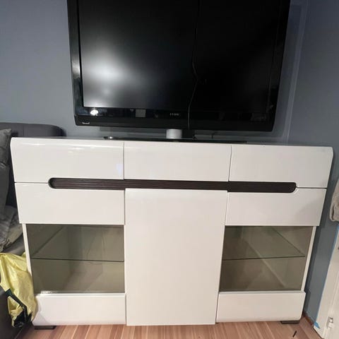 2 stk hvite / glass Vittsjø hyller / skjenk fra IKEA selges, pris pr. stk. Meget pent brukt.