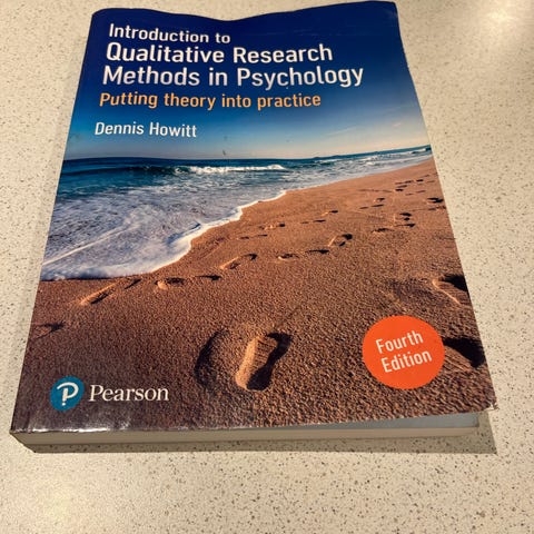 Dennis Howitt Introduction to Qualitative Research Methods in Psychology lærebok. Boken dekker kvalitative forskningsmetoder innen psykologi med fokus på anvendelse av teori i praksis.