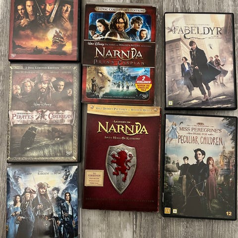 Selger mange DVDer (og noen Blu-ray) til 5,- stk. + porto. Utvalget ser du avbildet.