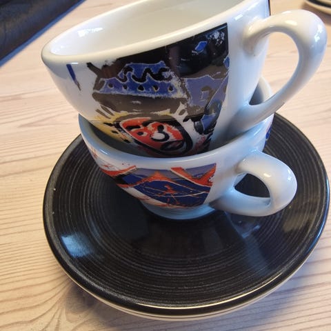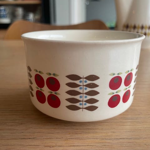 Mugge frå Egersund Fayance - serviset Cherie. Omlag 15,5cm høg. I fin stand utan skader. Har nokre bruksmerker. Ikkje krakelert.
