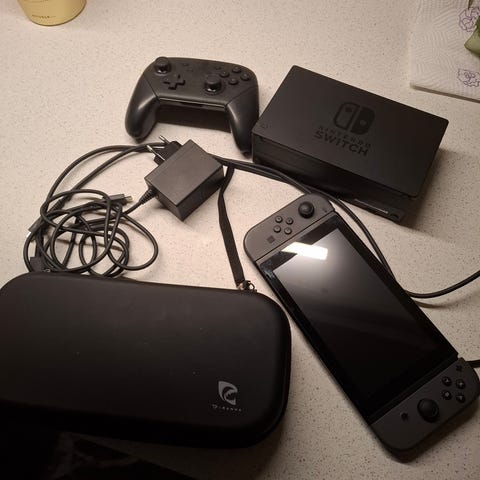 Nintendo Switch konsoll med Pro Controller, 32gb micro minnekort, og tilbehør