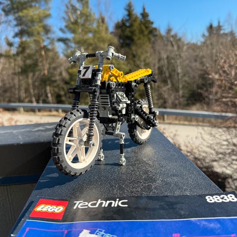 Selger LEGO Technic settet - 8233 Blue Thunder Vs. The Stinger med minifigur tech001b fra 1998. Settet er godt brukt og har slitemerker på gummien på pilene, og klistremerker sitter ok på. Se bilder for tilstand.