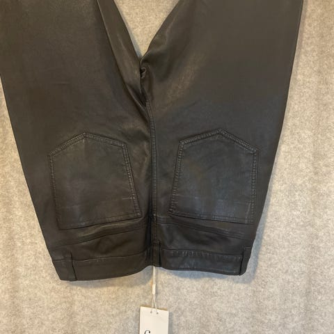 Five Units Bukser i skinn for kvinner, størrelse S, farge svart. Bukser laget i skinnmateriale med lommer og beltehemper. Stoff på innsiden av bena- sjekk modell på five unit sine nettsider.