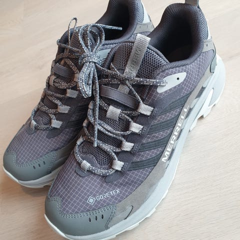 Merrell-tursko i veldig god stand. Brukt berre 2–3 gonger. Perfekte til lett fottur eller som reservesko på lengre turar. Skorne er lette og tørkar raskt.