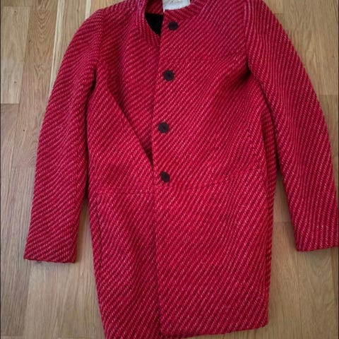 Ullkåpe kjøpt i vintagebutikk i København. Passer en xs/s. Mest sannsynlig ullstoff, de mente det i butikken, og det kjennes også sånn ut. Lekker å slenge utenpå i mellomsesongene. Har ligget i en pose en stund, og brettene retter seg ut fort!
