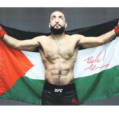 Plakaten er kjøpt i Oslo Spektrum under boksekampen og er rammet inn.