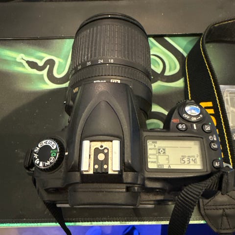 Selger mitt Nikon D90 18-105 VR Kit da jeg ikke bruker det lenger etter at jeg oppgraderte til nytt kamera. Lite og pent brukt med en shutter count på kun 3570 bilder! Har ikke vært mistet i bakken. Følger med objektiv AF-S DX NIKKOR 18-105 F/3,5-5,6, eske, bruksanvisning, to batterier, lader, analog video/audio-kabel, USB-kabel og bæreveske fra Vanguard. Kjøpt nytt i 2010.