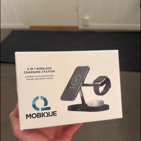 Praktisk ladestasjon for skrivebord eller nattbord.