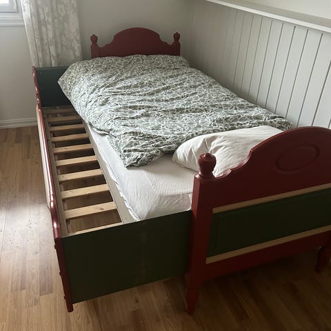 IKEA Høvåg Madras ca 25 cm tykk selges sammen med seng. Madrass er pent og lite brukt som gjesteseng. Selve sengen er i tre og er slitt. Den har gått av en liten oppussing.