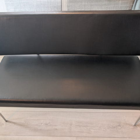 2-seter sofa i bambus - like fin inne som ute. Har stått lagret, ikke vært i bruk. Sttepute i offwhite kanvasstoff medfølger.