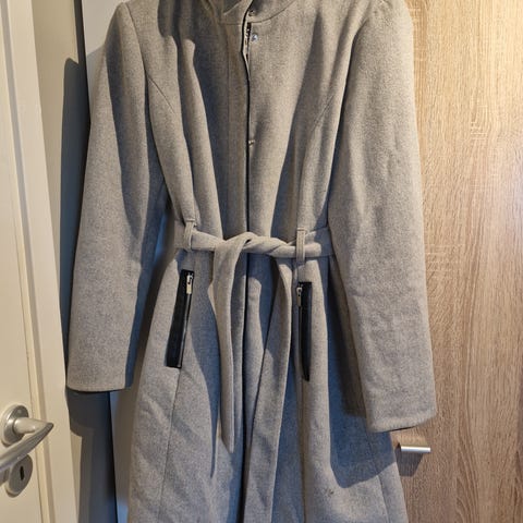 Vero Moda kåpe i størrelse L. Kåpen har en grå farge og er designet for kvinner. Jakken har lommer på siden og knapper på midten.