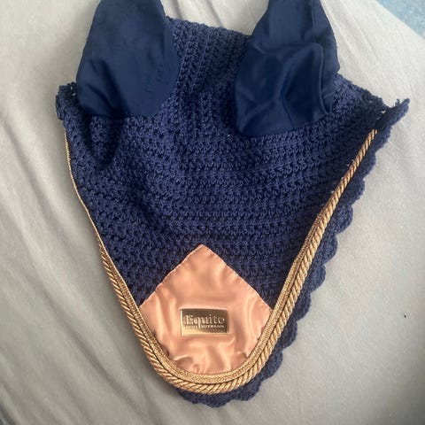 Nydelig mørk rød ørehette selges, med diamanter. Størelse full, brukt på min kaldblodstraver :)