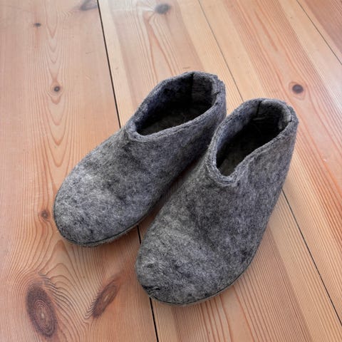 Varme, gode ulltøfler str 37. Tykk, tovet ull med skinnsåler. Ny pris 550kr.