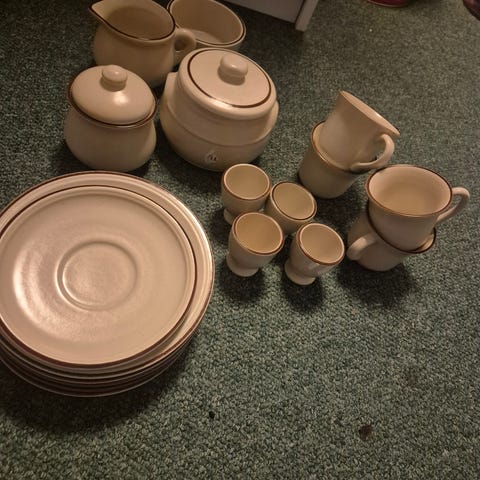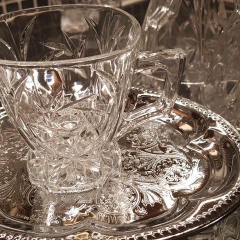 Service, glass, lysestaker og brikker for kopper og glass selges. Gi bud!