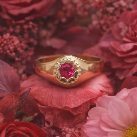Gullring, Rød sten ring, Fuksia ring, Fasettert sten, 585 gull, 14k gull, Christophersen EC, Mesterstemplet ring, Vintage ring, Klassisk ring, Elegant smykke, Nypusset ring, Nypolert ring, Som ny, Unik ring, Statement ring, Designer ring, Håndlaget ring, Tidløst design, Luksus ring, Rød perle, Håndlaget gullsmykke, Eksklusiv ring, Retro ring, Gave til henne, Gave til deg selv, Ring størrelse 53, Ring størrelse 54, Skandinavisk design, Collectors ring