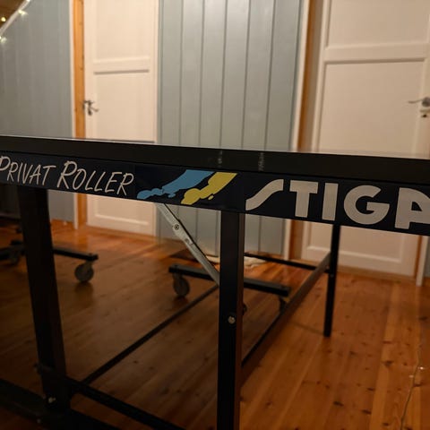 Stiga Outdoor Roller bordtennisbord i blå farge. Bordet er designet for utendørs bruk og har hjul for enkel transport og lagring.