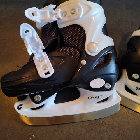 Graf Kid Axl ishockeyskøyter for barn i størrelse 29. Skøytene har justerbare spenner og er laget for ishockeybruk.