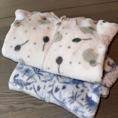 Varm og fargeglad vinterdress til barn. Med mulighet for å brette dressen over bena eller åpne for å ha på sko. To glidelåser foran for enkel åpning helt ned. Avtakbar hette. Fremstår som ubrukt.