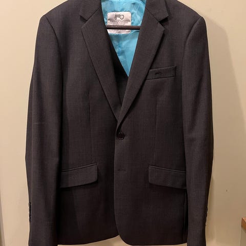 Moods of Norway ull vest i blå farge, herremodell i størrelse 50. Vesten er laget av ullmateriale og har justerbar belte på baksiden for tilpasning. Kappene trenger noe justering/stramming. Bukse str 48, jakke og vest str 50.