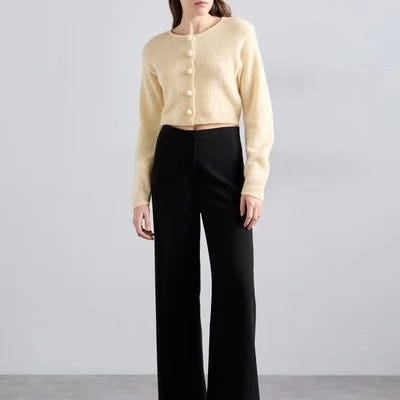 The Rodebjer Nala Crepe is the ultimate sensual pant cut from a viscose blend fabric, cut circular so that the fabric wraps around the leg and opens up as you move.. Zipper closure at the back. Circular cut; opens with movement. Capri length. Nypris 2800kr