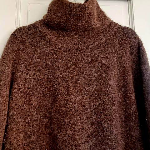 Kremhvit genser med kabelstrikk i str S. Generell på størrelsen, passer fint en XS til en M. Genseren fremstår som ny, den er brukt under fem ganger. 32% Alpakka 32% Ull 30% Nylon 6% Spandex. Nypris 3499,-