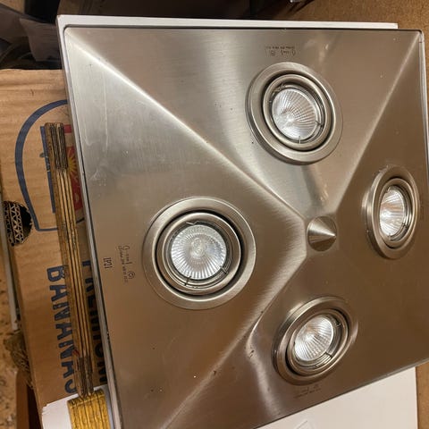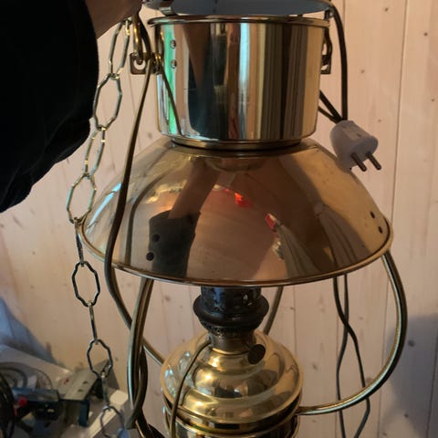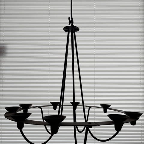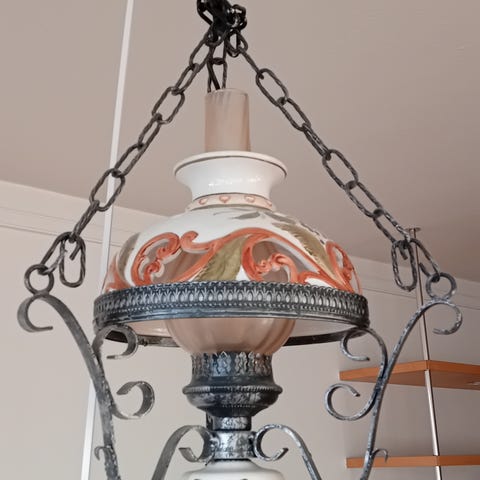 En nesten ny taklampe av en enkel smijerns-konstruksjon.