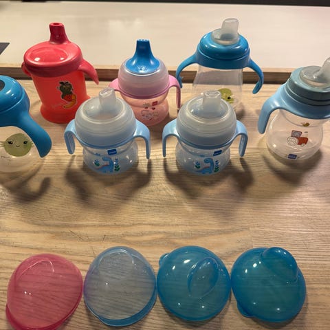 Diverse merker babyflasker i ulike størrelser og farger
