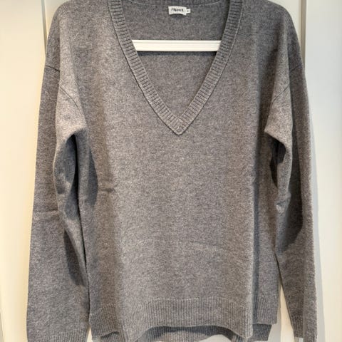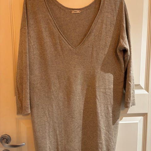Filippa K genser i 90 % ull og 10 % kashmir, størrelse S, farge grå. Genseren har ribbestruktur. Pent brukt.
