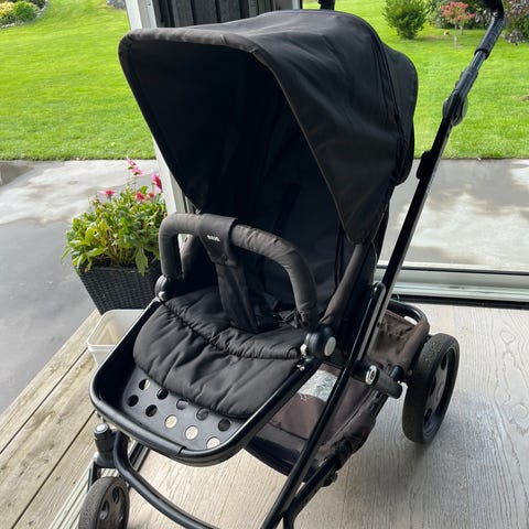 Brio barnevogn med separat bagdel og sittedel. Brukt som sovevogn i barnehage. Bruksmerker, men solid vogn med mye brukt igjen.