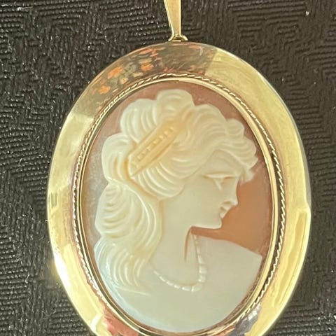 Anheng , Kamè i gull ,"Olympic"585 stemplet 14 karat, 3,5 gram ,2,8 cm høyde, 2,3 cm bred