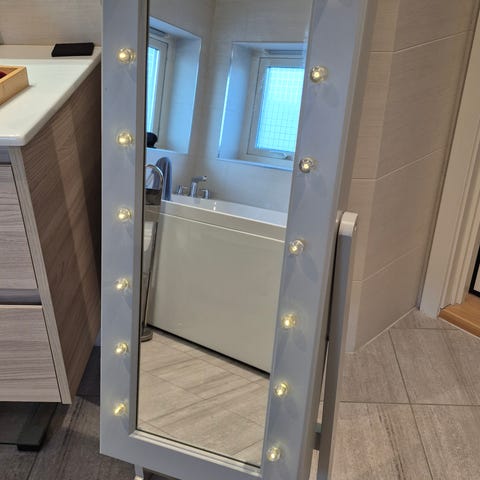 Nydelig speil med fasettslipt glass i ytterkant. Fritt for riper eller hakk. Nydelig ramme i gull/sort.