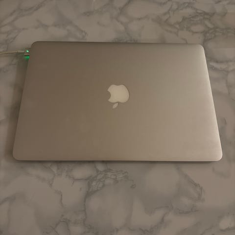 Apple MacBook Air bærbar PC i sølv. Utstyrt med en 1,8 GHz Intel Core i5-prosessor, 8 GB RAM og 1600 MHz DDR3-minne. Kjører operativsystemet macOS Monterey versjon 12.5.1. Modellen er fra 2017 og har en skjermstørrelse på 13 tommer.