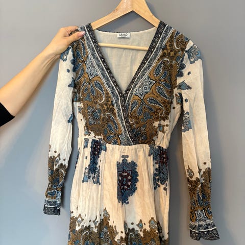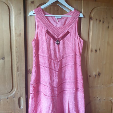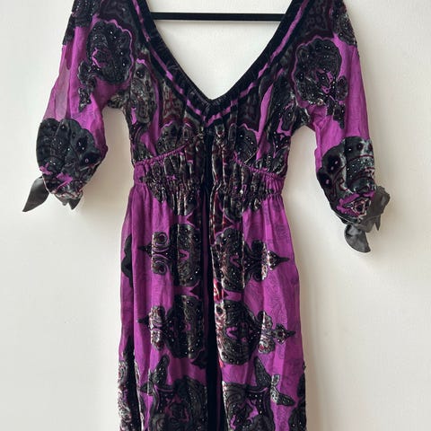 Elisa Cavaletti kjole i flott fargepalett gammelrosa, plomme, aubergine. Mange fine detaljer og anvendelig til ulike anledninger. Kjolen har størrelse Large.