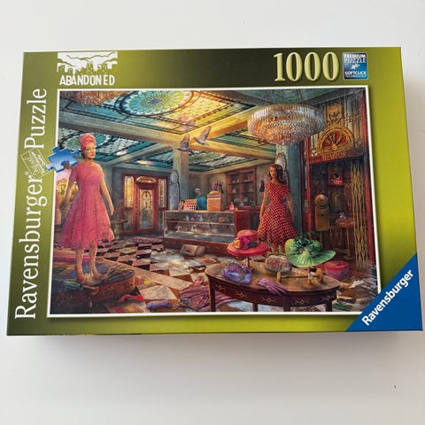 Ravensburger Lost Places puslespill med 1000 biter. Puslespillet har et motiv av et forlatt sted med detaljerte omgivelser.