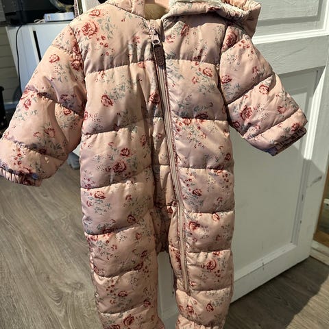 Newbie flerfarget baby vinterdress i størrelse 68, designet for jenter. Laget av polyester med foret innside for varme. Dressen har hette og full glidelås foran for enkel påkledning. Med føtter. Perfekt for en nysgjerrig baby som vil ut å ake litt i vinterværet eller brukes i bæreselen.
