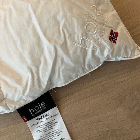 Høie Saga dundyne varm 140 x 220 cm. Ingen flekker, lite brukt. Veldig god, myk og varm dyne.