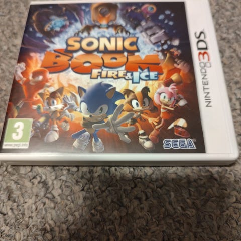 Nintendo 3DS Sonic Boom: Fire & Ice spill. Spill for Nintendo 3DS-konsollen. Inneholder Sonic Boom-tema og er i fysisk kassetttformat.