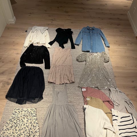 Selger en klespakke med stitch t skjorter, bukse, genser og nattøy. Det går fra str 152 til XS’. Det er klær fra H&M og new Yorker. Det er ikke i salg i butikker lengre.