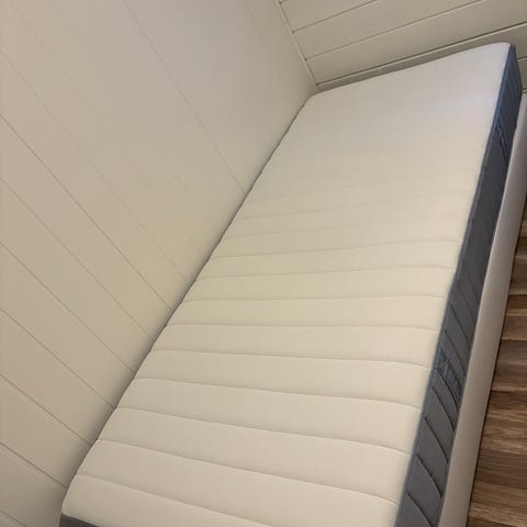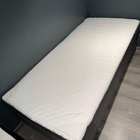 Rammemadrass fra Jysk selges etter dødsbo. Selges uten som den er på bildet (uten den øverste tynne overmadrassen som opprinnelig er med fra Jysk). Rammemadrassen ser veldig fin ut. Må hentes og bæres ut av kjøper.