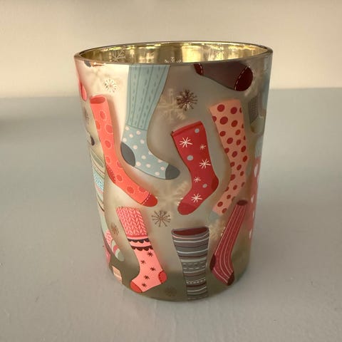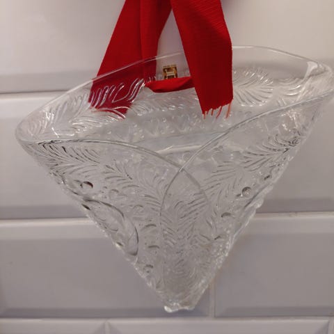 Rød lyslykt i metall med julemotiv selges. Aldri brukt.