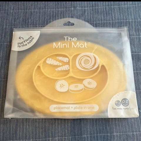 Happy Mat er en sklisikker tallerken som suger seg fast til bordet slik at barnet ikke kan velte eller løfte tallerkenen. Når barnet er ferdig med å spise skylles tallerkenen og vaskes med såpevann eller i oppvaskmaskinen. Genialt!