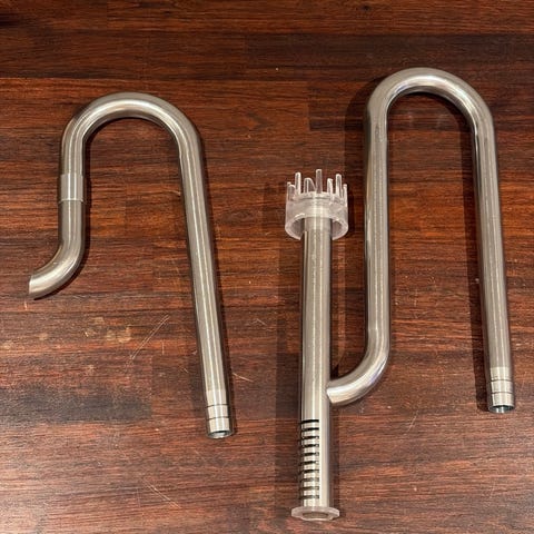 Selges: vanninntaks- og utløpsrør i rustfritt stål til utvendig akvariefilter.