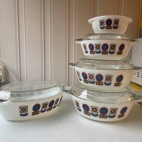 Har 2 flotte småfat i sitron i str 26 x 18 cm og 31 x 23 cm. Drikkemugge er 16 cm høy.