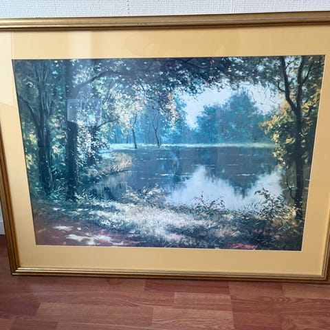 Selger et pent og dekorativt bilde i god stand. Bildet har et motiv som passer godt inn i de fleste moderne interiører, og kommer ferdig innrammet i en stilren, sort /gull ramme.