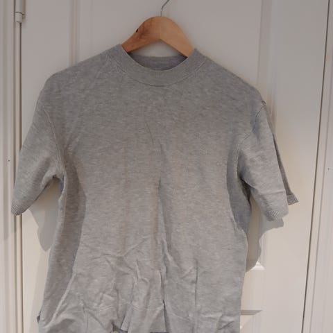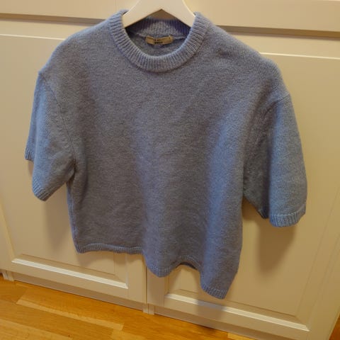 Genser med tskjorte ermer, 80% merinoull✨ Line of Oslo, str L🩵