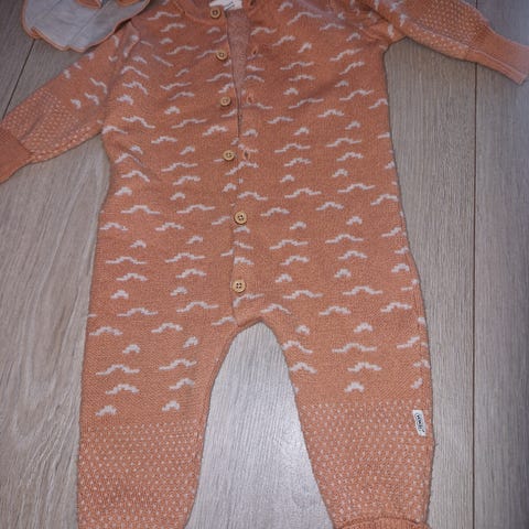 Voksi dress i ullfleece med tilhørende balaclava. Begge er i fargen soft grape som er en dus lilla/rosafarge. Det følger også med et par booties fra et annet merke, men fargen er nesten identisk, så det blir et veldig fint sett☺️